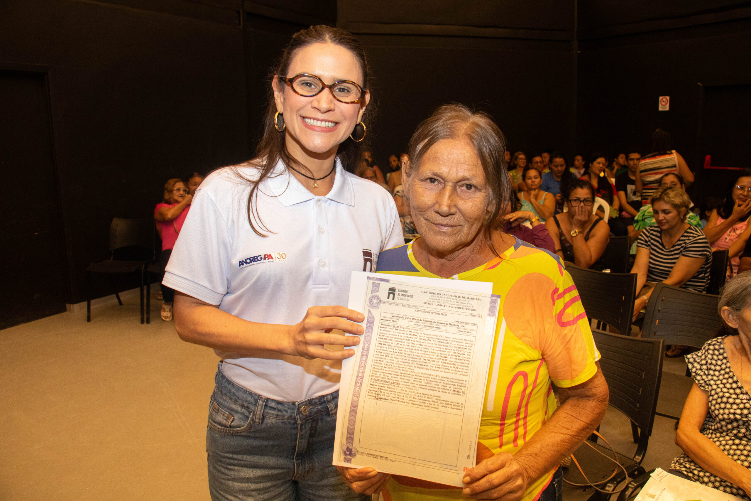 Além de sua atuação institucional, Myrza Tandaya, também titular do Cartório de Único Ofício de Marituba, teve papel fundamental no processo ao realizar o registro dos títulos, garantindo que as famílias recebessem seus documentos com a propriedade devidamente constituída, assegurando plena eficácia jurídica aos atos praticados.
