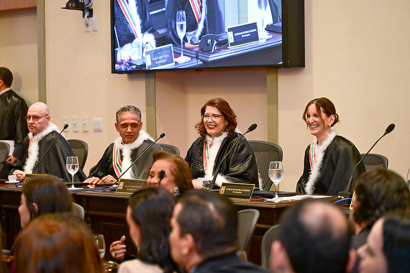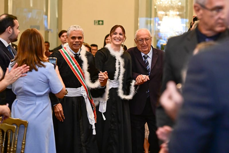 Conduzida pelo presidente do TJPA, desembargador Roberto Gonçalves de Moura, a solenidade foi marcada pelo juramento regimental dos empossados, assinatura do termo de posse e pela outorga do Grau Grã-Cruz da Medalha do Mérito Judiciário. A cerimônia também reuniu desembargadores(as), magistrados(as), representantes dos Três Poderes e demais convidados, em uma noite de homenagens e reconhecimento à trajetória dos novos integrantes da Corte.