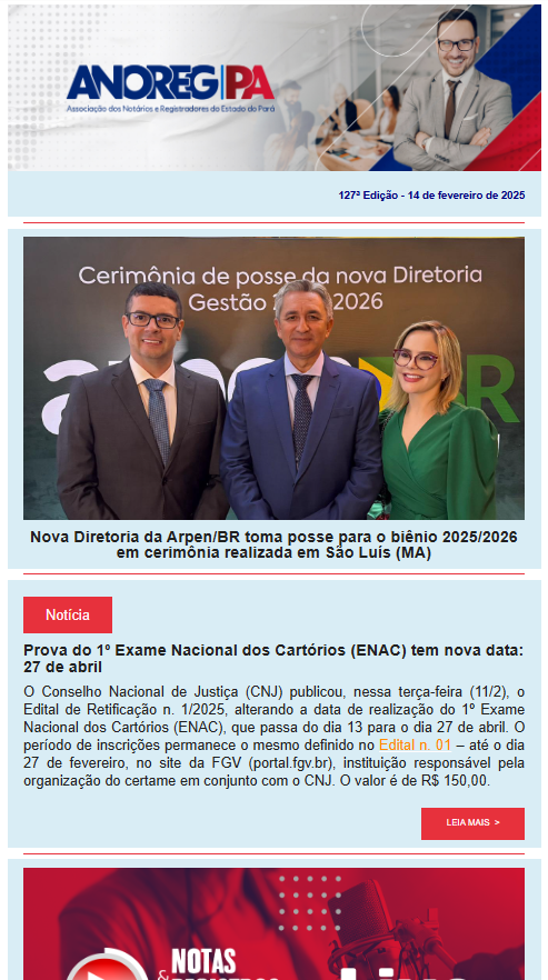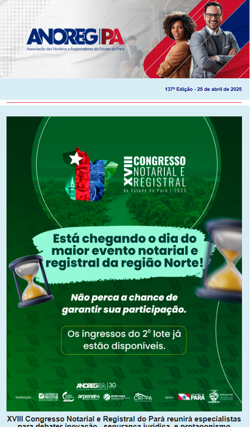 Boletins semanais com as notícias mais recentes do segmento notarial e registral paraense!