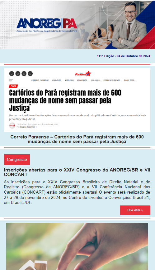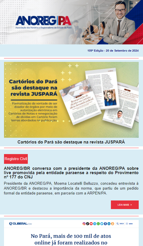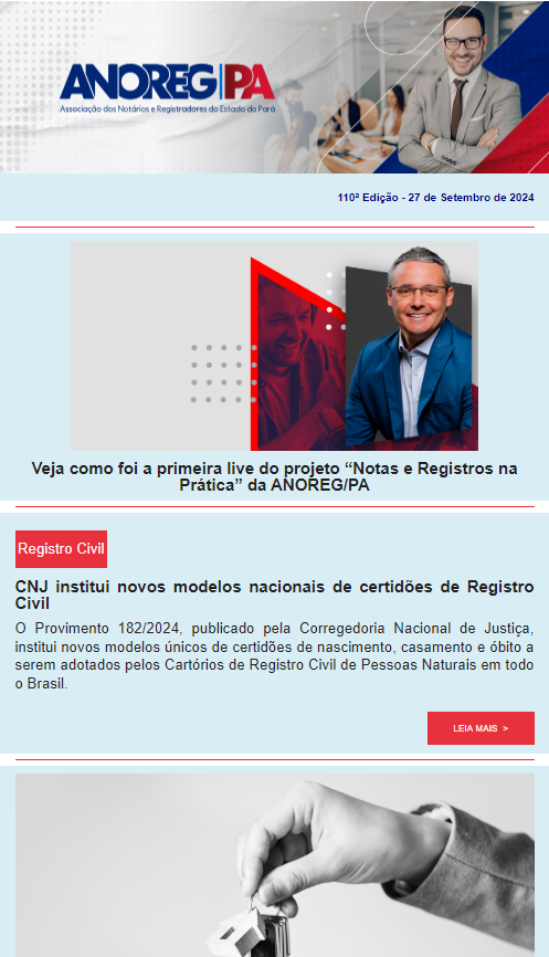 Boletins semanais com as notícias mais recentes do segmento notarial e registral paraense!