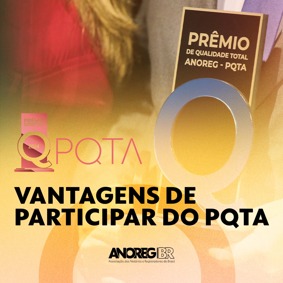 Com a celebração dos 20 anos do Prêmio de Qualidade Total ANOREG (PQTA), a edição de 2024 promete ser uma oportunidade imperdível para os cartórios de todo o Brasil se destacarem e promoverem a excelência em seus serviços. Inscrever-se no PQTA não é apenas uma chance de reconhecimento, mas uma oportunidade para melhoria contínua, inovação e valorização profissional.