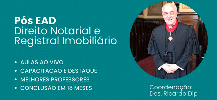 Garanta sua vaga no curso de pós-graduação (método EAD) em direito notarial e registral-imobiliário coordenado pelo Des. Ricardo Dip. Associados ANOREG/PA ganham descontos especiais.