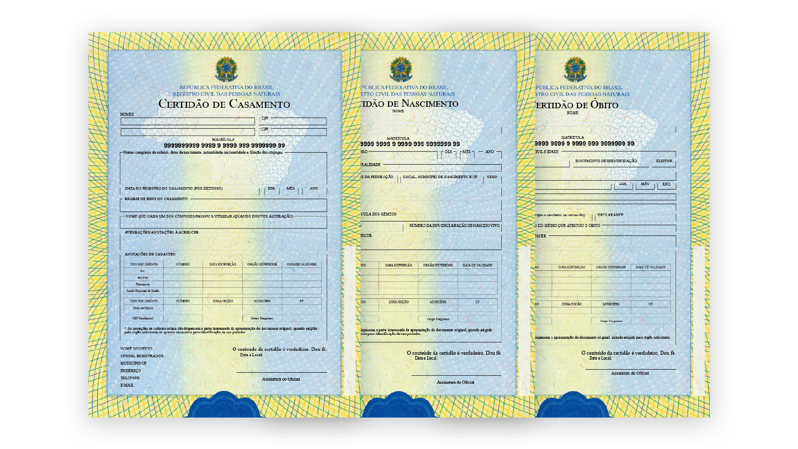 No caso da certidão de casamento, a principal mudança foi uma distinção entre a data da celebração e a data do registro, o que não vinha sendo contemplado. As certidões passaram a incluir a possibilidade de conversão de união estável em casamento, refletindo as mudanças no reconhecimento de diferentes formas de união conjugal.