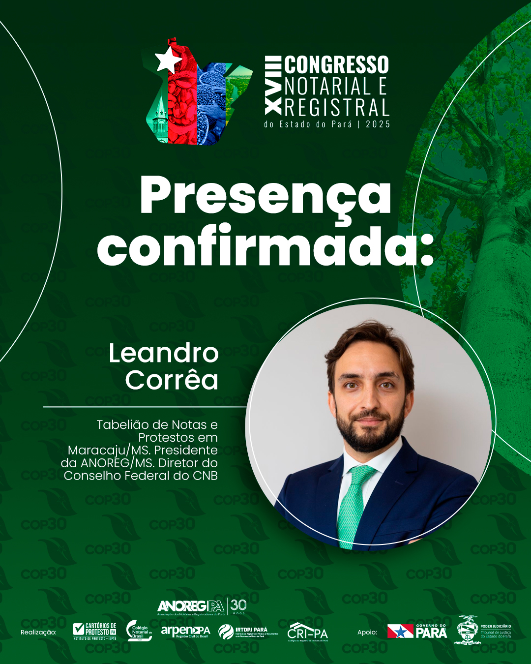 Com vasta experiência na área e reconhecido por sua atuação institucional, Leandro Corrêa será um dos palestrantes do congresso, contribuindo com reflexões sobre os desafios e oportunidades do setor, especialmente no que diz respeito à inovação, à segurança jurídica e à valorização da função notarial e registral no Brasil contemporâneo.