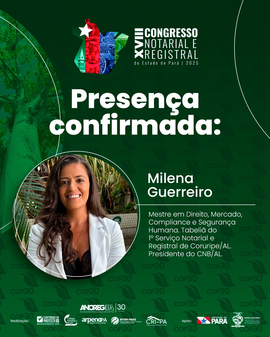 Nos dias 10 e 11 de junho, Belém será palco do XVIII Congresso Notarial e Registral do Pará, o maior evento do segmento na região Norte. Reunindo autoridades, especialistas e profissionais de todas as regiões do Brasil, o encontro contará com a presença da tabeliã Milena Guerreiro, uma das vozes mais ativas e influentes do notariado alagoano.