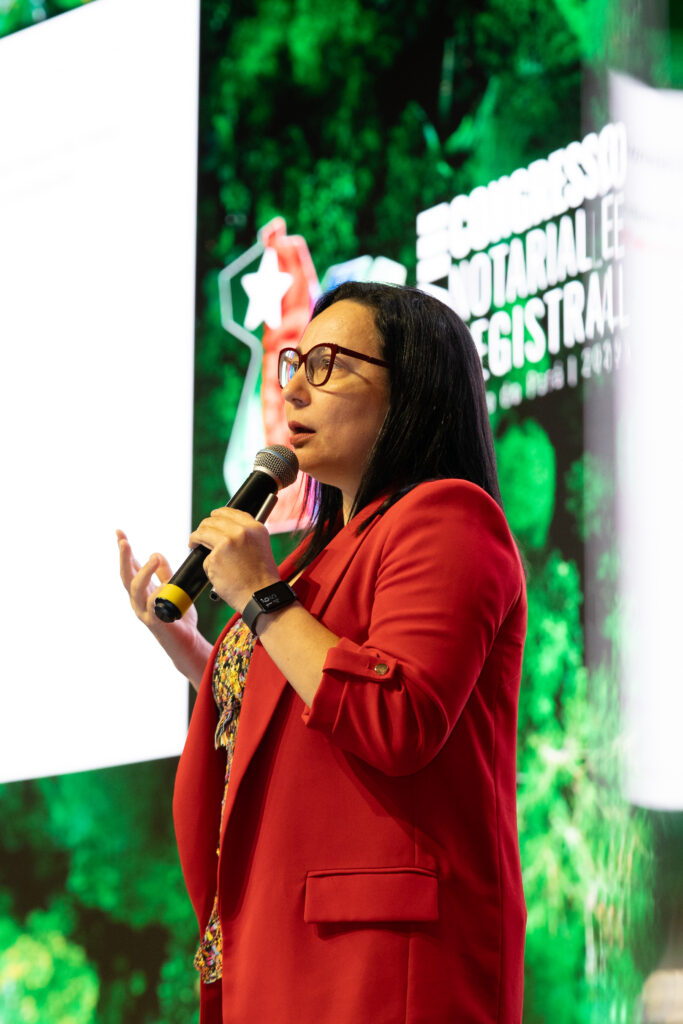 Para ela, a participação dos Cartórios é vital. Ela celebrou a inclusão da averbação do contrato entre desenvolvedores e geradores na lei, mas lamentou a não admissão de uma proposta que visava a participação do notário na certificação da “disponibilidade material e jurídica dos ativos ambientais”. Ao concluir, Andreia Barreto enfatizou que a proteção da floresta e o enfrentamento das mudanças climáticas dependem diretamente do enfrentamento do histórico fundiário. “O nosso invento foi ao invés de partir do crédito de carbono que seria um mercado muito mais complexo, nós partimos de onde a floresta, que é aquele prédio está advindo, está sendo comercializado. E com isso nós chegamos em outros atores importantes dentro desse processo”, finalizou.
