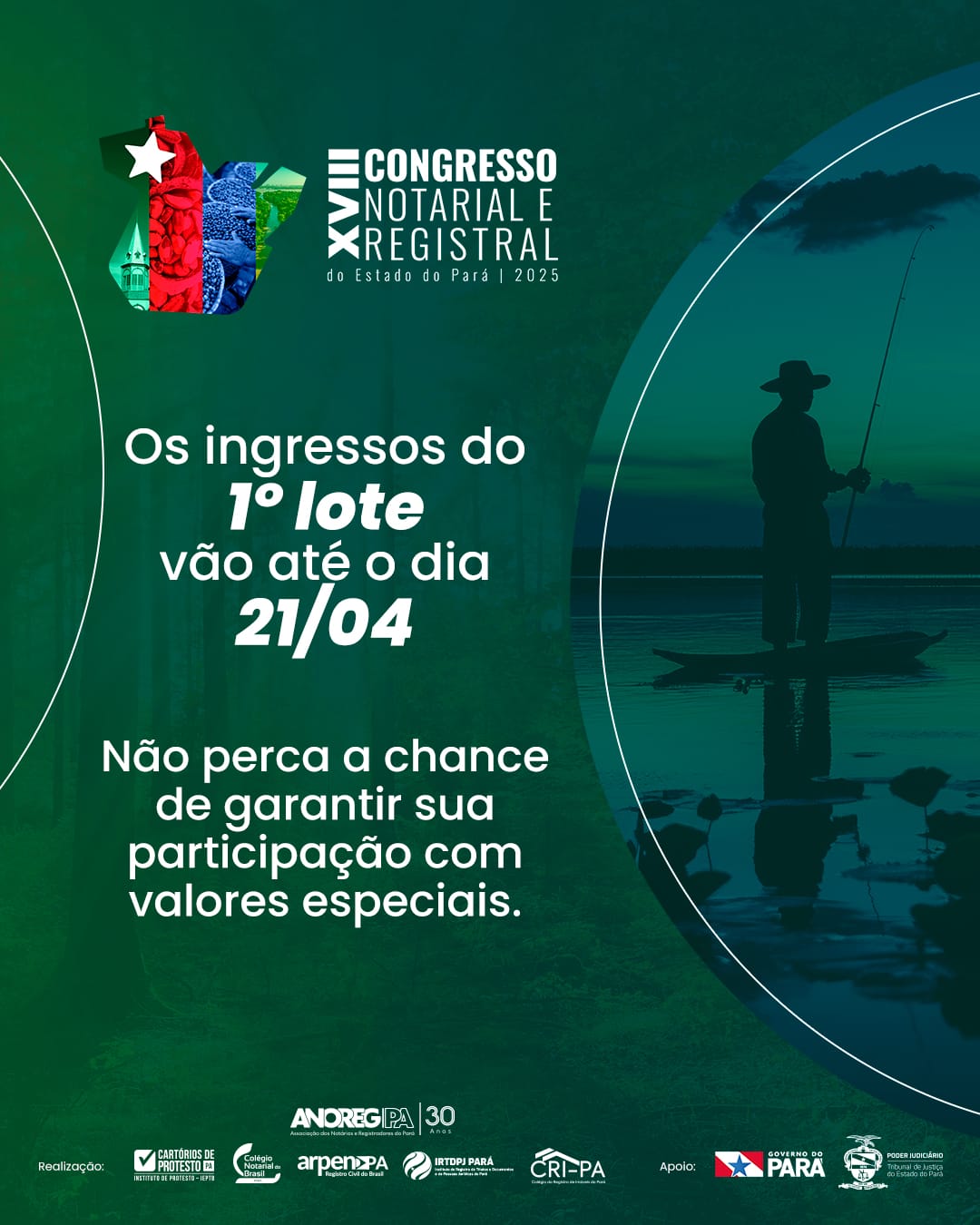 O XVIII Congresso Notarial e Registral do Pará se aproxima, e a procura por ingressos está intensa. Com a proximidade do evento, os ingressos do 1º lote estão quase esgotados. Para quem deseja garantir sua participação com valores especiais, o momento de agir é agora. A partir do dia 22 de abril, será aberto o 2º lote, com novos valores, proporcionando uma última oportunidade para aqueles que ainda não garantiram sua presença.